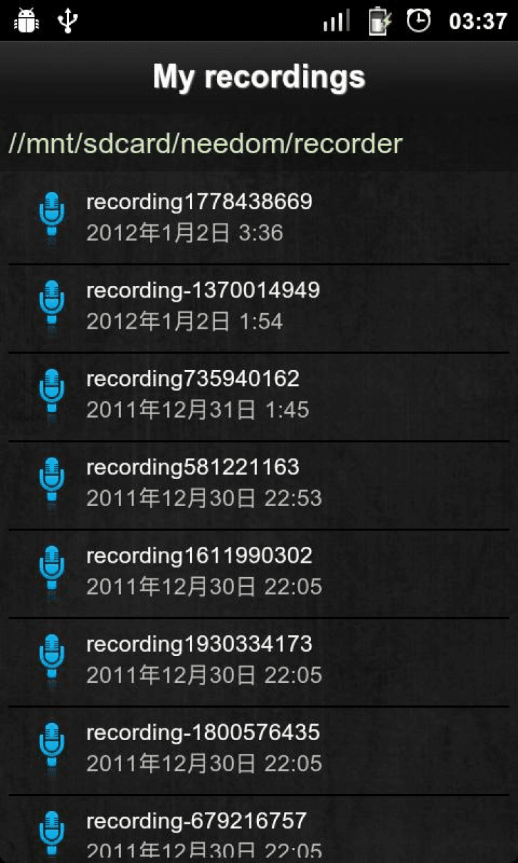 Приложение Диктофон сохраняет записи в формате .amr. Приятной особенностью приложения является возможность установки записей в качестве мелодии звонка.