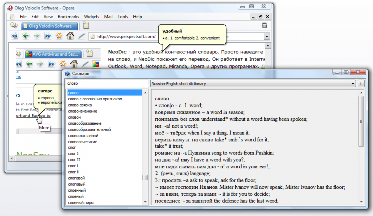 Помимо всего прочего NeoDic обладает следующими особенностями