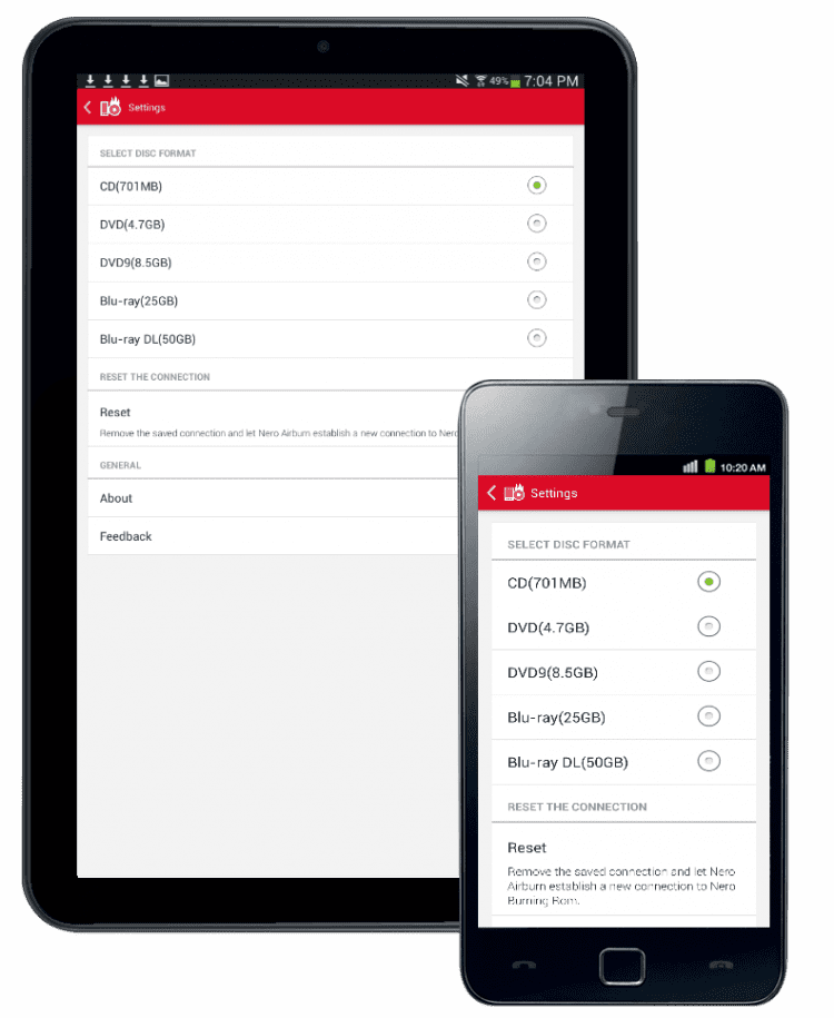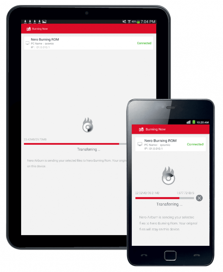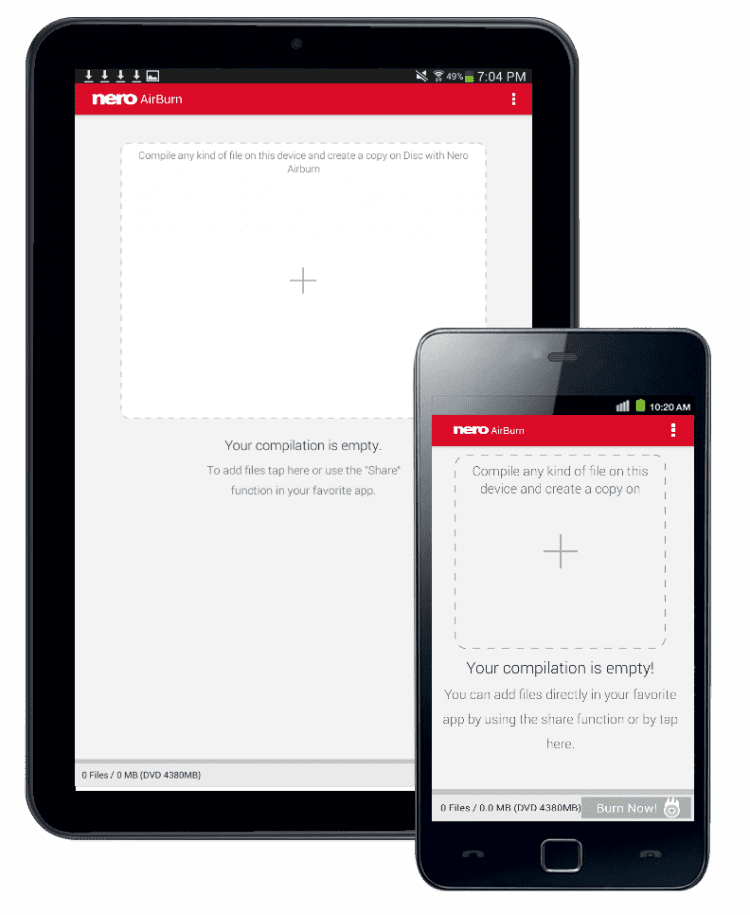 Приложение, которое работает в сочетании с Nero Burning ROM для ПК и позволяет создавать проекты мультимедиа или данных прямо на Android-устройстве, для дальнейшего прожига на ПК или ноутбуке. Выбирайте файлы для записи на диск из памяти вашего мобильного устройства, а это приложение автоматически запишет их на диск при подключении к той же сети WiFi, к которой подключен ваш компьютер с установленным Nero Burning ROM. Приложение поддерживает запись на CD, DVD или Blu-ray. По завершении прожига, вы получите соответствующее уведомление на экране своего мобильного устройства.