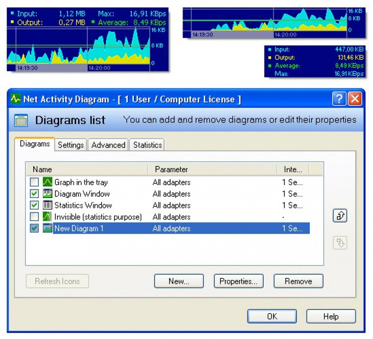 Net Activity Diagram - это программа, которая показывает количество информации, полученное Вашим компьютером через Интернет или локальную сеть. Она поддерживает основные Internet-протоколы (TCP, UDP) и показывает переданные через них количество информации. Вы можете отдельно снимать информацию о траффике с каждого порта. NAD обладает простым и удобным интерфейсом, легкой настройкой и полной прозрачностью совершаемых процессов.