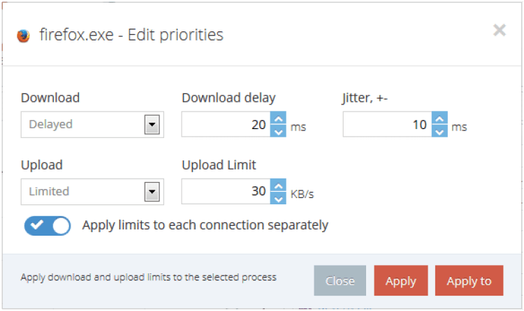 NetBalancer позволяет создавать правила для каждого приложения. С помощью этих правил вы можете составлять расписание доступа в интернет, ограничивать объем трафика и многое другое.