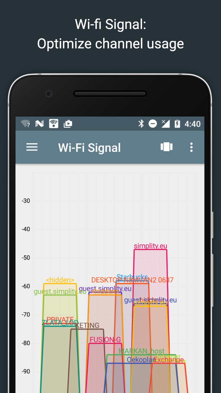 - отображение информации о силе сигнала и сетевых каналах в виде графика или текста