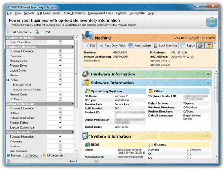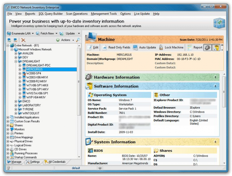 Network Inventory - это программа, которая позволяет легко и удобно производить мониторинг, диагностику и инвентаризацию сети. После запуска, Network Inventory автоматически собирает информацию об аппаратном и программном обеспечении удаленных компьютеров.