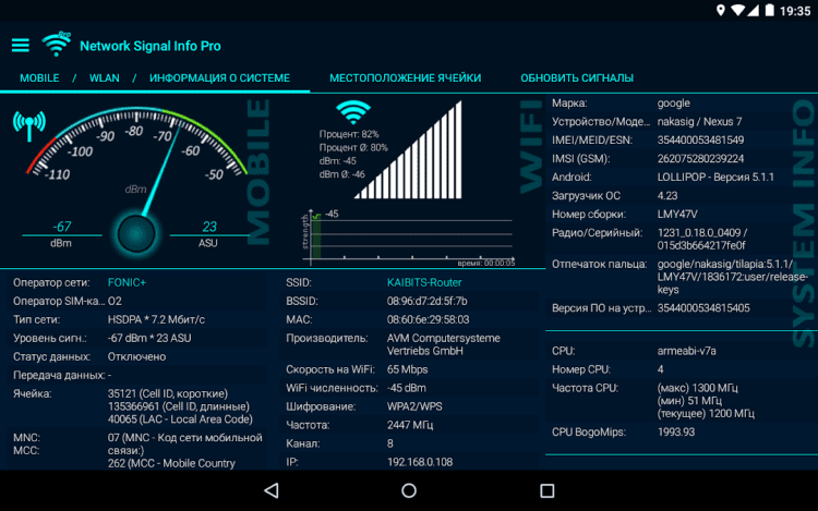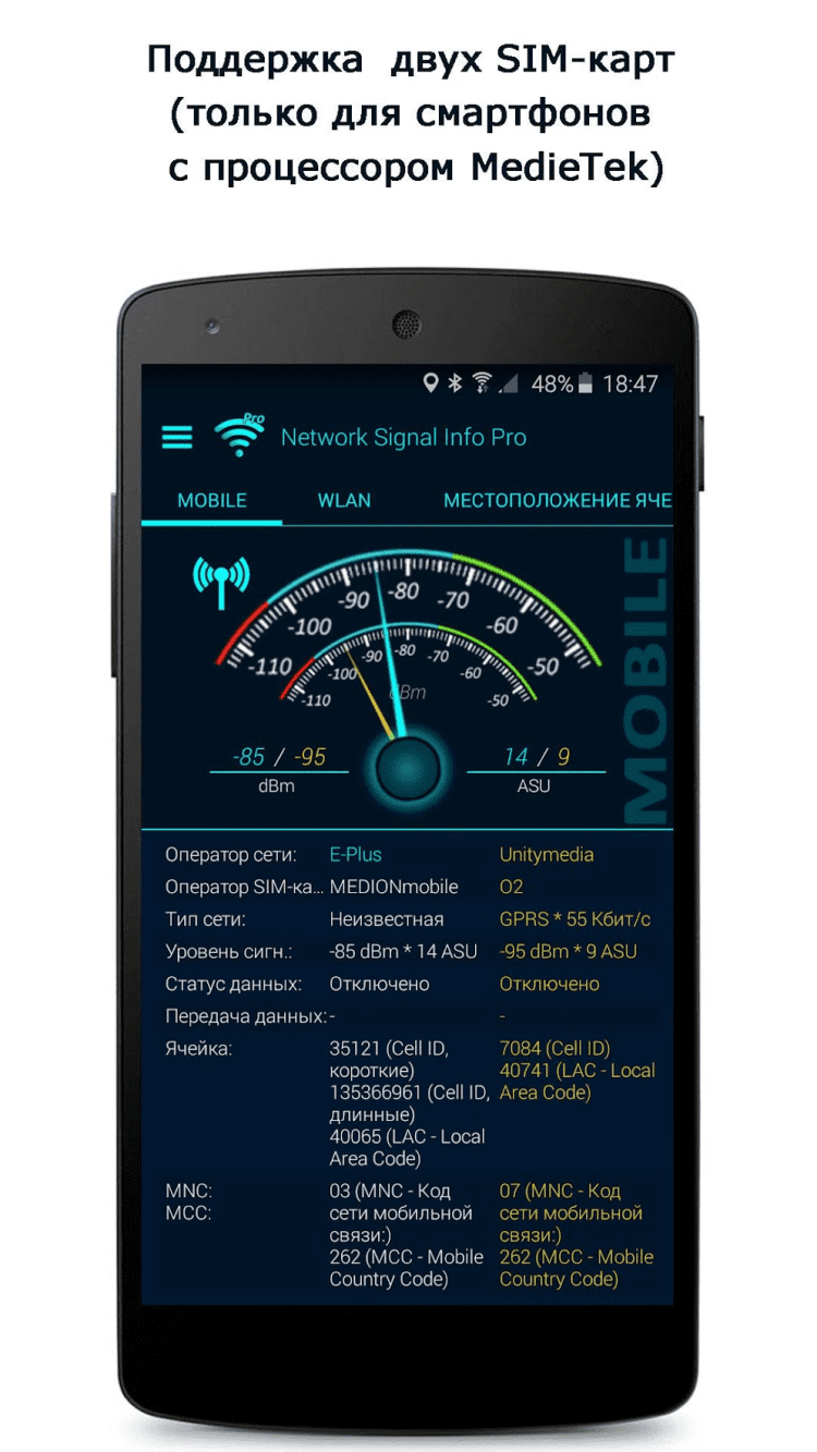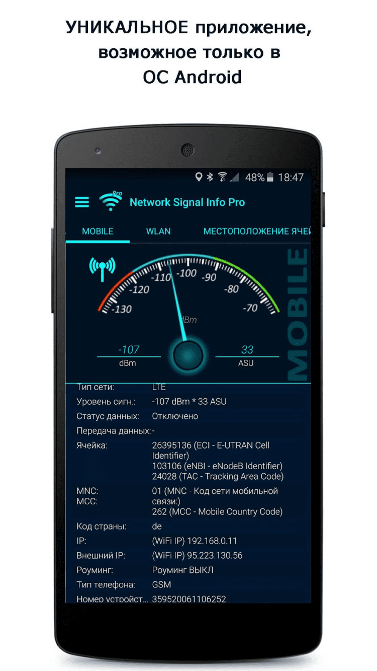 Network Signal Info Эта программа поможет вам получить полную информацию о подключенной мобильной сети, либо WiFi соединении.