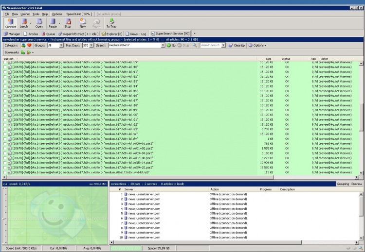 NewsLeecher - это программа для загрузки файлов из сети Usenet. С ее помощью можно загружать видео, аудио, изображения, ПО и другие файлы. Обладает мощным поисковым движком, который позволяет искать любые файлы по названию или ключевым словам.