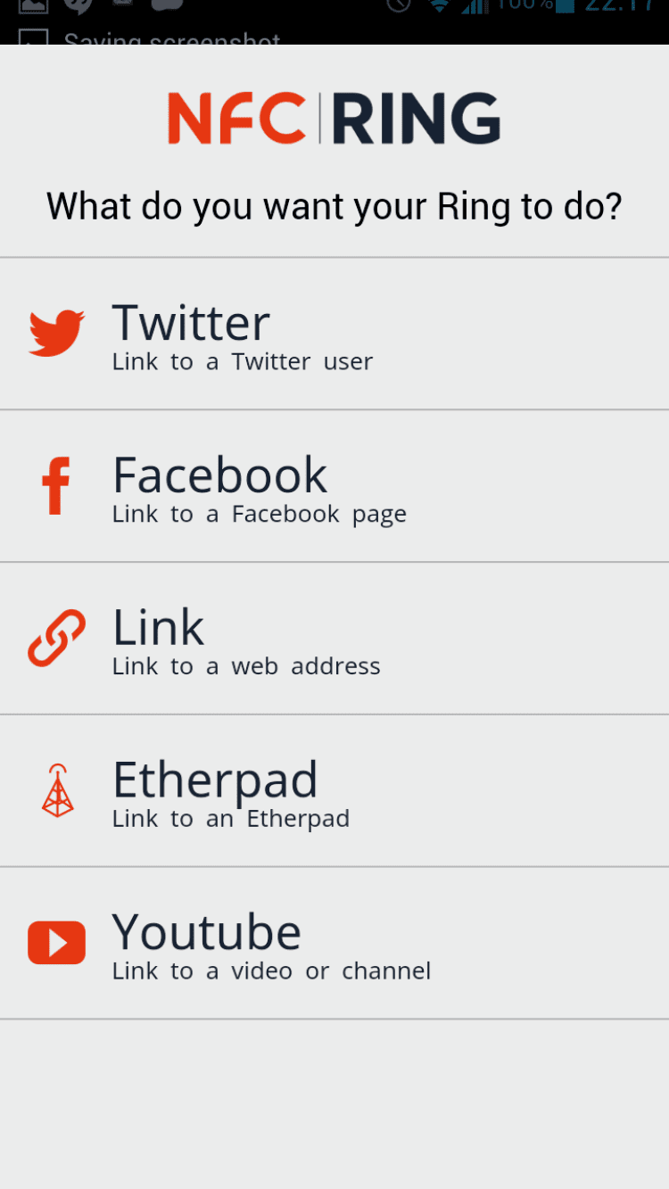 Эта программа превратит ваше NFC Ring из красивого аксессуара в функциональное носимое устройство. С её помощью, вы получите возможность считывать существующие данные со своего кольца, а также записывать новые. Кроме того, NFC Ring Control позволит создавать ссылки на ваши страницы в социальных сетях, канал на YouTube, либо ссылки на прочие сайты.