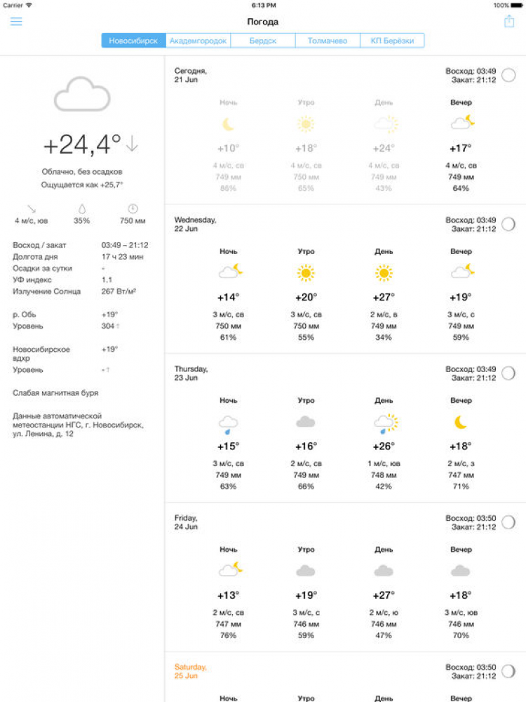 - получить прогноз погоды на 3 и 10 дней