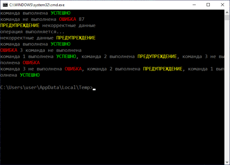 - Не требуется подготовка выводимого текста, такая как прописывание управляющих последовательностей, а значит программа подходит для любых имеющихся bat файлов и программ.