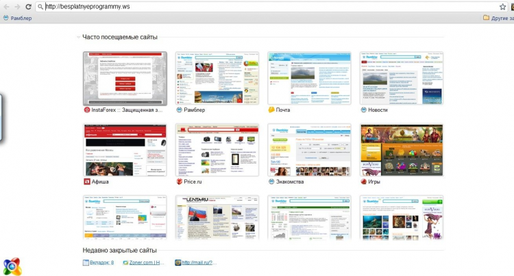 В Нихроме нет ничего лишнего — всё предельно просто и понятно. Легко управлять открытыми вкладками,а строка ввода адреса одновременно является и поисковой строкой.