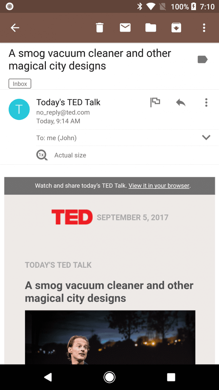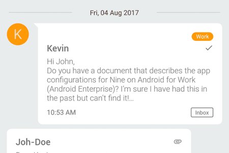 Nine — это почтовый клиент для Android, основанный на технологии Direct Push для синхронизации с серверами Microsoft Exchange Server c использованием Microsoft Exchange ActiveSync. Приложение Nine - Exchange Outlook Mail обладает поддержкой нескольких аккаунтов одновременно, возможностью синхронизации календарей и контактов, встроенным RTF-редактором, глобальным поиском адресов, функцией выборочной синхронизации папок электронной почты, автоматической настройкой для большинства популярных серверов, как Office 365, Exchange Online, Hotmail, Live.com, Outlook, MSN или Google Apps, поддержкой защищенного протокола SSL, режимом беседы, удобными виджетами рабочего стола, а так же поддержкой устройств Android Wear.