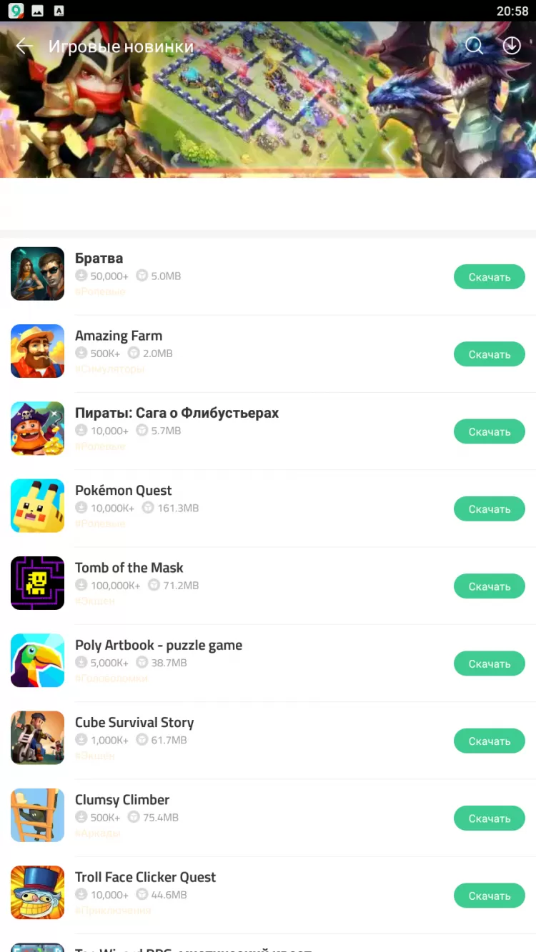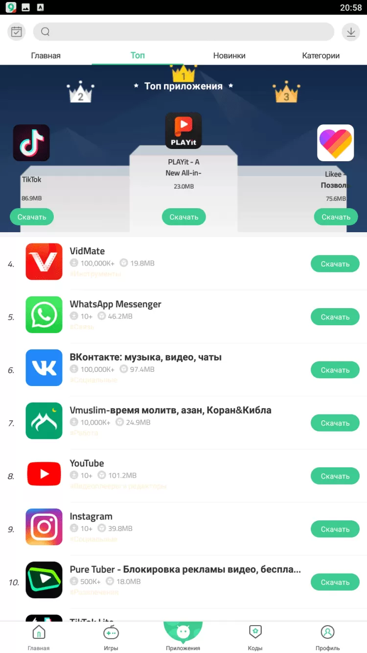 Ещё одной приятной особенностью Nine Store является наличие ТОПов приложений. В них вы найдете лучшие программы, которым отдало предпочтение наибольшее число пользователей, без каких-либо накруток. Кроме того, в каталоге регулярно появляются новые подборки лучших приложений и игр, которые наверняка придутся вам по вкусу.