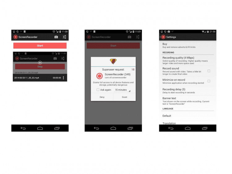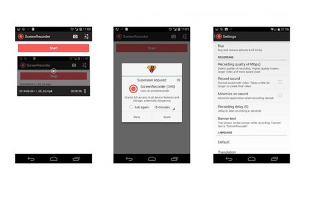 Программа для записи видео с экрана Android-устройств. Требует наличия прав суперпользователя. Благодаря этой программе, вы сможете записывать обучающие видео, рекламу своих приложений, а так же обычные видео клипы со звуком. Вы сможете настроить качество видео и создавать скриншоты вместе видео.