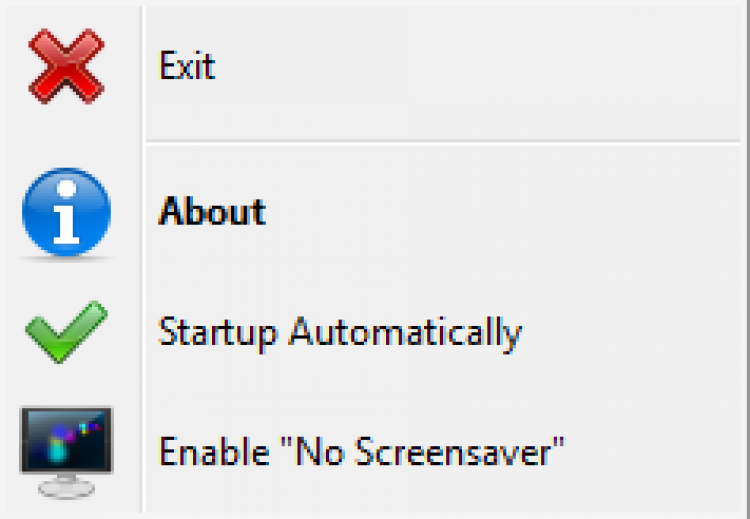 No Screensaver - это простая программа, предназначенная для быстрого отключения скринсейверов на Windows. При помощи No Screensaver, вам более не придется открывать контрольную панель для отключения заставки. Теперь, сделать это можно прямо в трее, всего несколькими нажатиями на иконку программы.