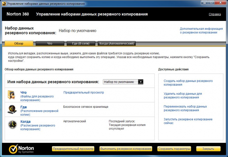 Norton Security with Backup (Norton 360) - эта программа для комплексной защиты компьютера рекомендуется скачать Norton Security with Backup. Сделать это может каждый пользователь Глобальной сети Internet. В пакет включены файрвол, антивирус, предупреждение фишинга. Также в него входит комплект утилит, предназначенный для резервного копирования системы, настройки и оптимизации. Использование пакета оправдало себя на практике.