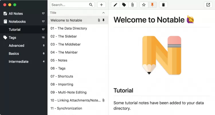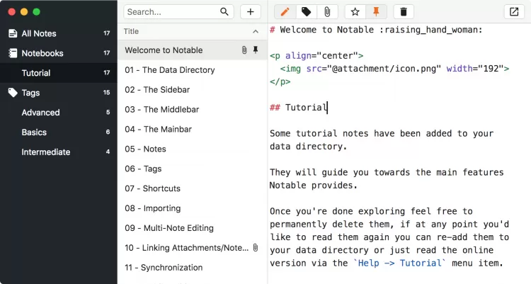 Notable - приложение на основе Electron, которое использует GitHub-подобную Markdown-разметку. Оно не использует WYSIWYG или проприетарные форматы, поддерживает вложенные теги, имеет чистый, интуитивно понятный интерфейс.