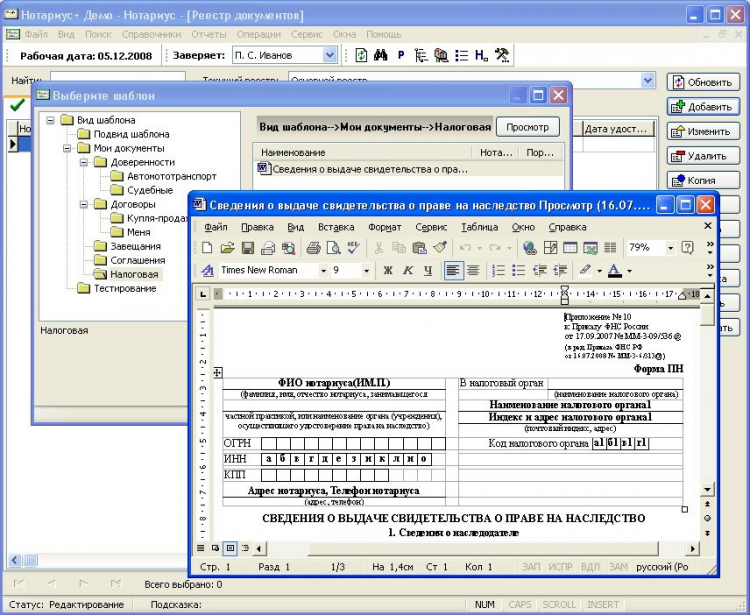Нотариус+ Наша программа Нотариус+ позволяет облегчить и ускорить процесс подготовки документов, участвующих в совершении нотариальных действий.
