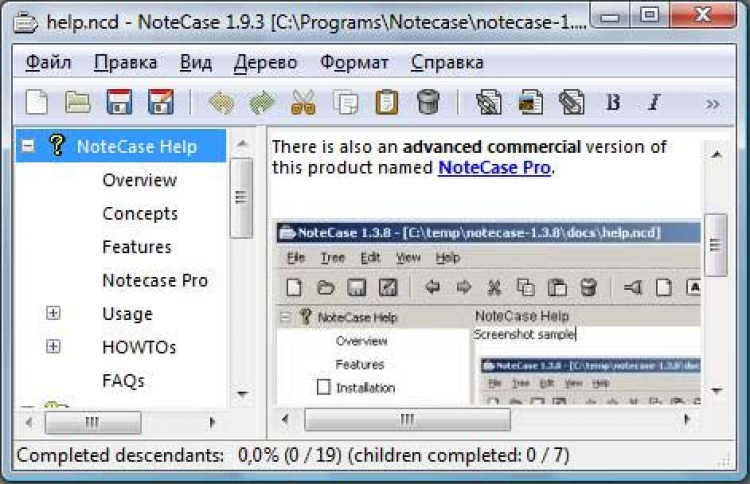 NoteCase - это менеджер заметок, позволяющий хранить информацию в виде иерархической структуры. NoteCase поможет собрать все ваши заметки в единый древовидный документ. Для увеличения надежности хранения информации все записи могут шифроваться.
