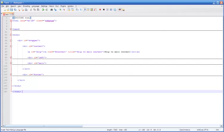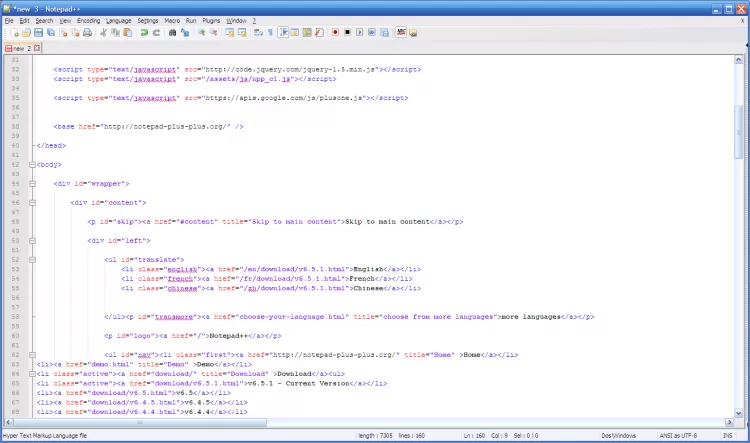 Notepad++ - это популярный текстовый редактор с открытым исходным кодом для Windows, поддерживающий большое количество языков программирования, подсветку синтаксиса и разметки. Используется для создания странниц интернет-сайтов. Данный редактор текстовых файлов по функциональности и удобству применения значительно превосходит Блокнот, входящий в стандартный пакет Windows.