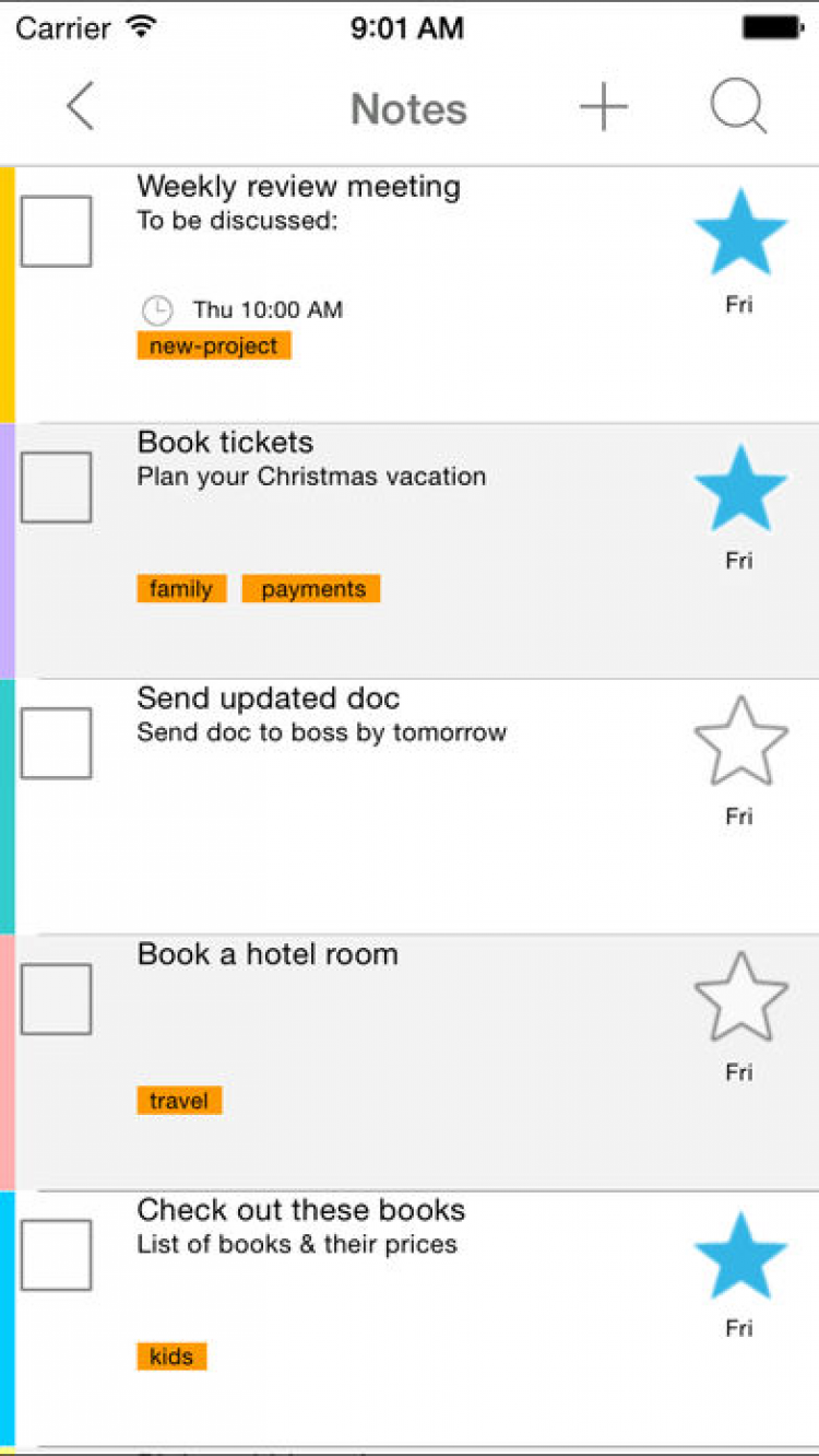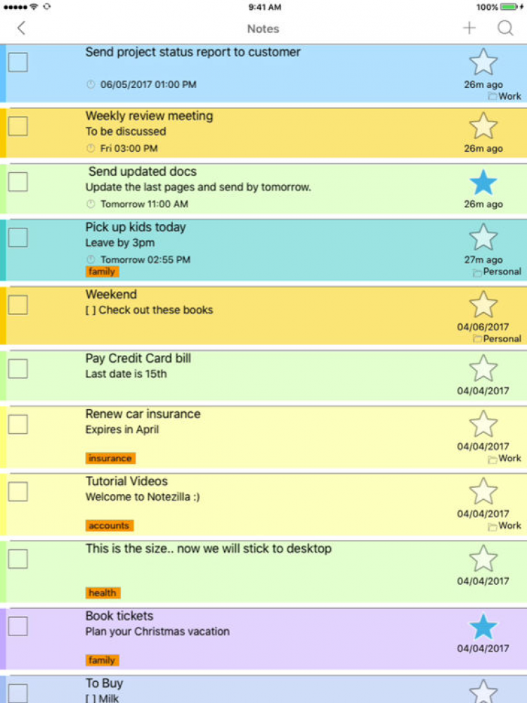 При помощи приложения Notezilla для iOS, вы сможете быстро записать свои мысли и создать списки задач на цветных стикерах. Держите заметки всегда на виду, а также следуйте созданным спискам, вычеркивая выполненные задачи, которые повысят мотивацию в достижении своей цели как можно быстрее.