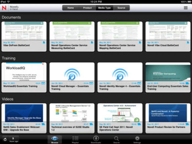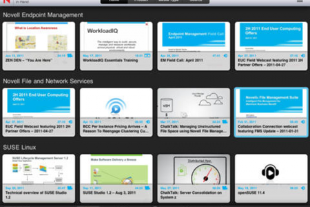 Novell in Hand for the iPad Программа для мобильных устройств iPad, которая позволит вам получать последнюю техническую информацию или информацию о продажах в любой момент. Вы сможете получать эту информацию в виде аудио, видео файлов, документов, ChalkTalk, а так же проч.