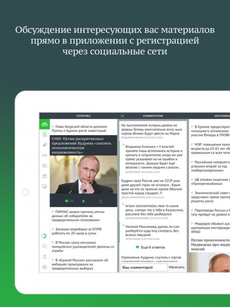 Так же, это приложение позволяет регулировать размер шрифта для упрощения чтения, комментировать новости, темы и передачи, подписываться на уведомления о начале передач в программе, смотреть передачи с субтитрами, а так же использовать горизонтальный режим для более удобного чтения новостей.