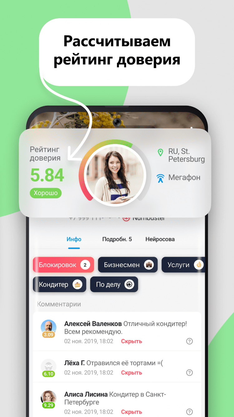 Программа Кто звонил? для Android позволяет бесплатно определять два основных варианта имени звонящих абонентов, просматривать все отзывы, оценки, блокировки и метки безопасности. За дополнительную плату (20 рублей в месяц), список возможностей расширяется.