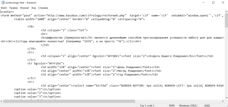 Нумерология - это программа позволяет разместить на своём сайте форму Предсказания по Числам. Пользователи Вашего сайта будут вводить свои данные на Вашем сайте и при нажании кнопки "Submit" будет открываться окошко с предсказанием (результатом ввода данных). Пользователь, при желании, сможет повторить процедуру сколько ему угодно раз.