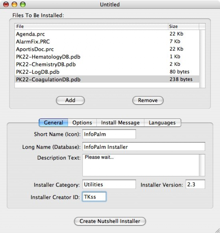 Nutshell Программа для создания автоматических инсталляторов PRC для устройств на Palm OS. После передачи таких файлов на мобильное устройство, просто кликните по ним, чтобы они автоматически установились.