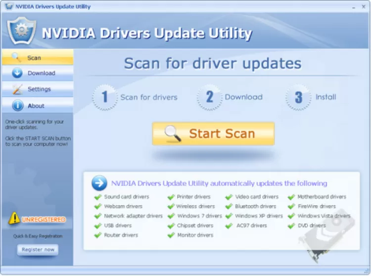 NVIDIA Drivers Update Utility - это утилита, предназначенная для автоматической проверки и обновления драйверов для компонентов и устройств компании NVIDIA (видеокарт, материнских плат и т.п.). Язык интерфейса - английский. Удобное в использовании приложение. Запустите программу обновления драйверов NVIDIA, и она автоматически найдет нужный update.
