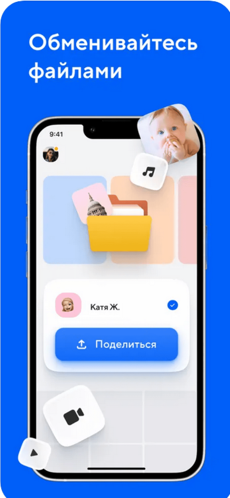 Сохраненными на облаке файлами можно быстро делиться с друзьями, отправляя ссылку на них по SMS, электронной почте, либо через популярные мессенджеры или социальные сети.