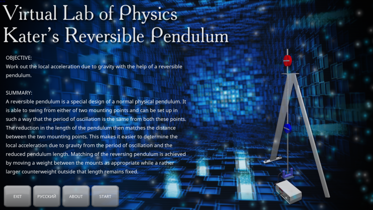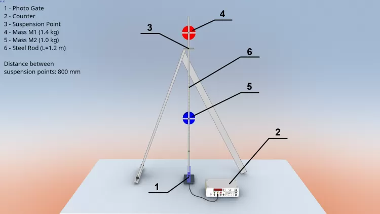 Оборотный маятник Катера - это 3D виртуальная лабораторная работа по физике (раздел: Механика).