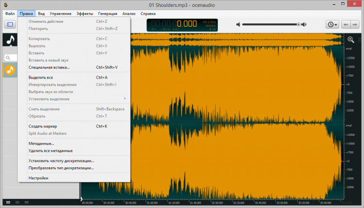 Нет никакой необходимости пользоваться платными утилитами для редактирования аудиофайлов, если можно скачать OcenAudio с набором необходимых функций. Разработанное специалистами одноименной компании приложение используется для изменения мелодий в разнообразных форматах, начиная от традиционных OGG, MP3, RAW, заканчивая CAF, WAV и другими. После открытия утилиты и запуска нужного документа перед вами появляется спектрограмма с панелями управления. Активированные эффекты применяются моментально, поэтому отслеживать результаты и вносить корректировки несложно.