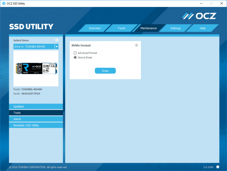 OCZ SSD Utility утилита для работы с SSD дисками OCZ. Имеет графический интерфейс, но может работать и из командной строки. Она позволяет получить актуальную информацию о состоянии вашего диска, узнать его статус, технические сведения. Плюс с ее помощью можно также обновить прошивку диска до последней версии.