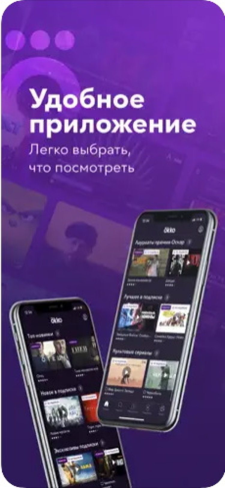 Установите на мобильный телефон или планшет приложение Okko, чтобы получить доступ к огромному и регулярно пополняющемуся каталогу лучшего видео контента со всего мира. Выберите наиболее подходящий вариант подписки и подключите к своей учётной записи до пяти устройств: смартфонов, планшетов, Smart TV, компьютеров, либо консолей PlayStation или Xbox. А одной из самых приятных особенностей приложения является функция скачивания видео в память мобильного устройства для просмотра без доступа в Интернет, или во время заграничных поездок.
