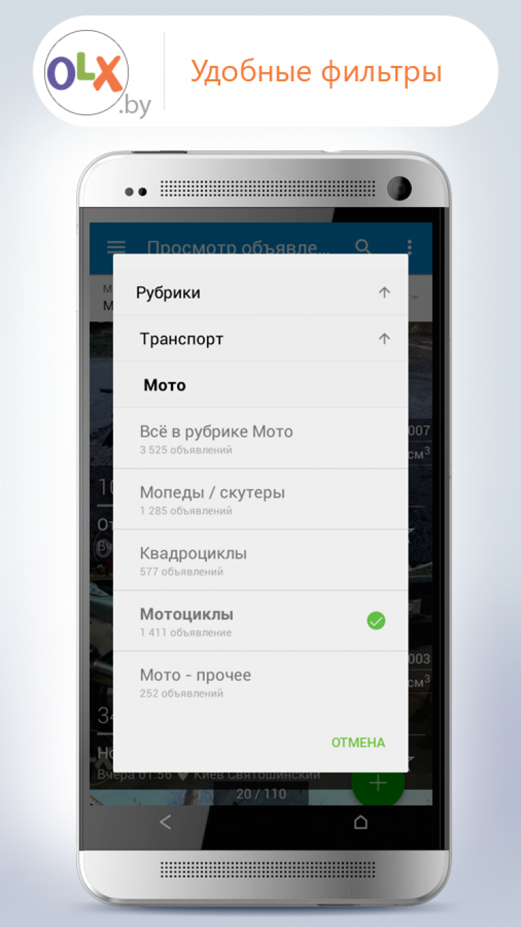Получите доступ к огромной базе бесплатных объявлений OLX в Беларуси и подавайте собственные объявления прямо со своего мобильного устройства. Благодаря приложению OLX.by Бесплатные Объявления, покупать и продавать всевозможные товары и услуги стало ещё проще. Воспользуйтесь удобным поиском с множеством фильтров, чтобы найти то, что вам нужно, просмотрите полноразмерные фотографии, а затем свяжитесь с продавцом при помощи текстового сообщения, либо позвонив ему напрямую.