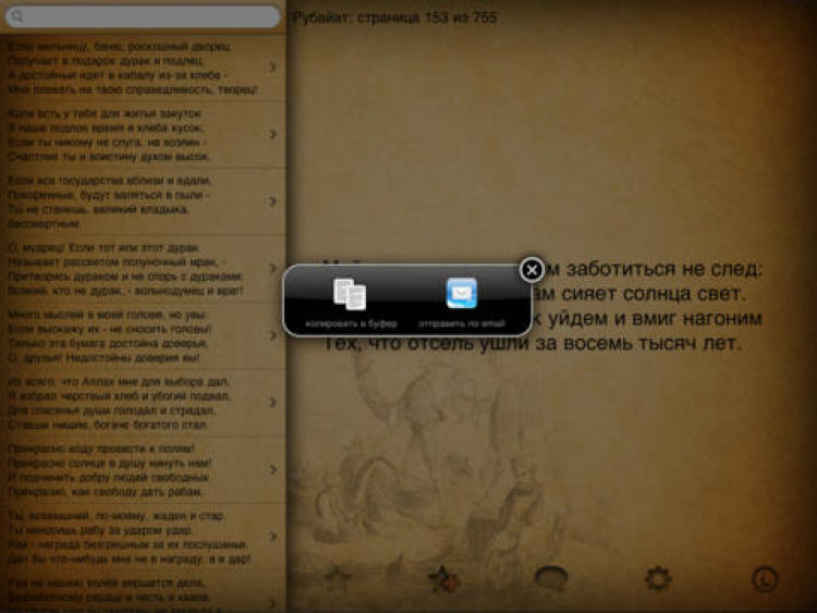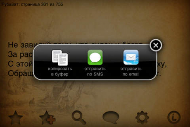 5. Отправка любого рубаи (четверостишия) по SMS или email.
