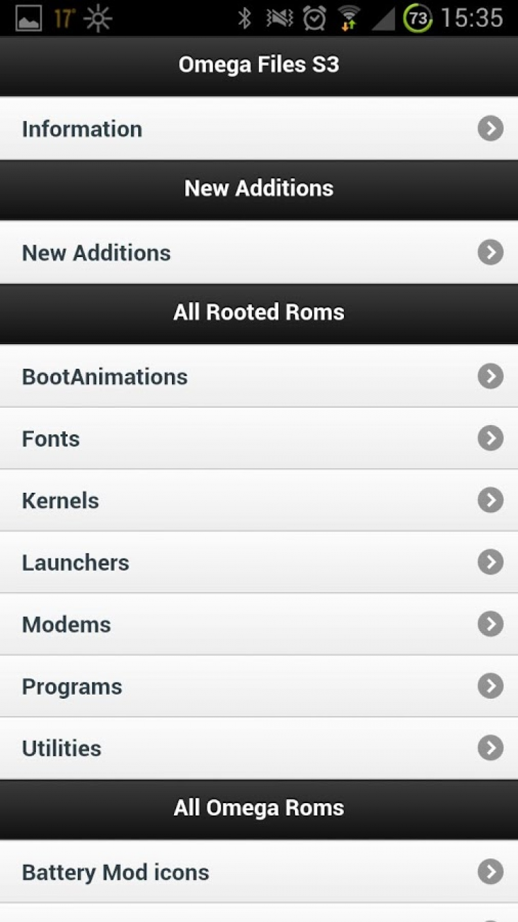 Omega Files Эта программа поможет вам установить и настроить прошивку Omega Rom на своем Android-устройстве. Программа Omega Files поддерживает устройства Galaxy S5 G900F-I, Galaxy S4 I9505, Galaxy S4 I9500, Galaxy S3 I9300, Galaxy Note 3 N9005, Galaxy Note 2 N7100, Galaxy S2 I9100 и Galaxy Note 10.1. Не пытайтесь установить это приложение на других устройствах!