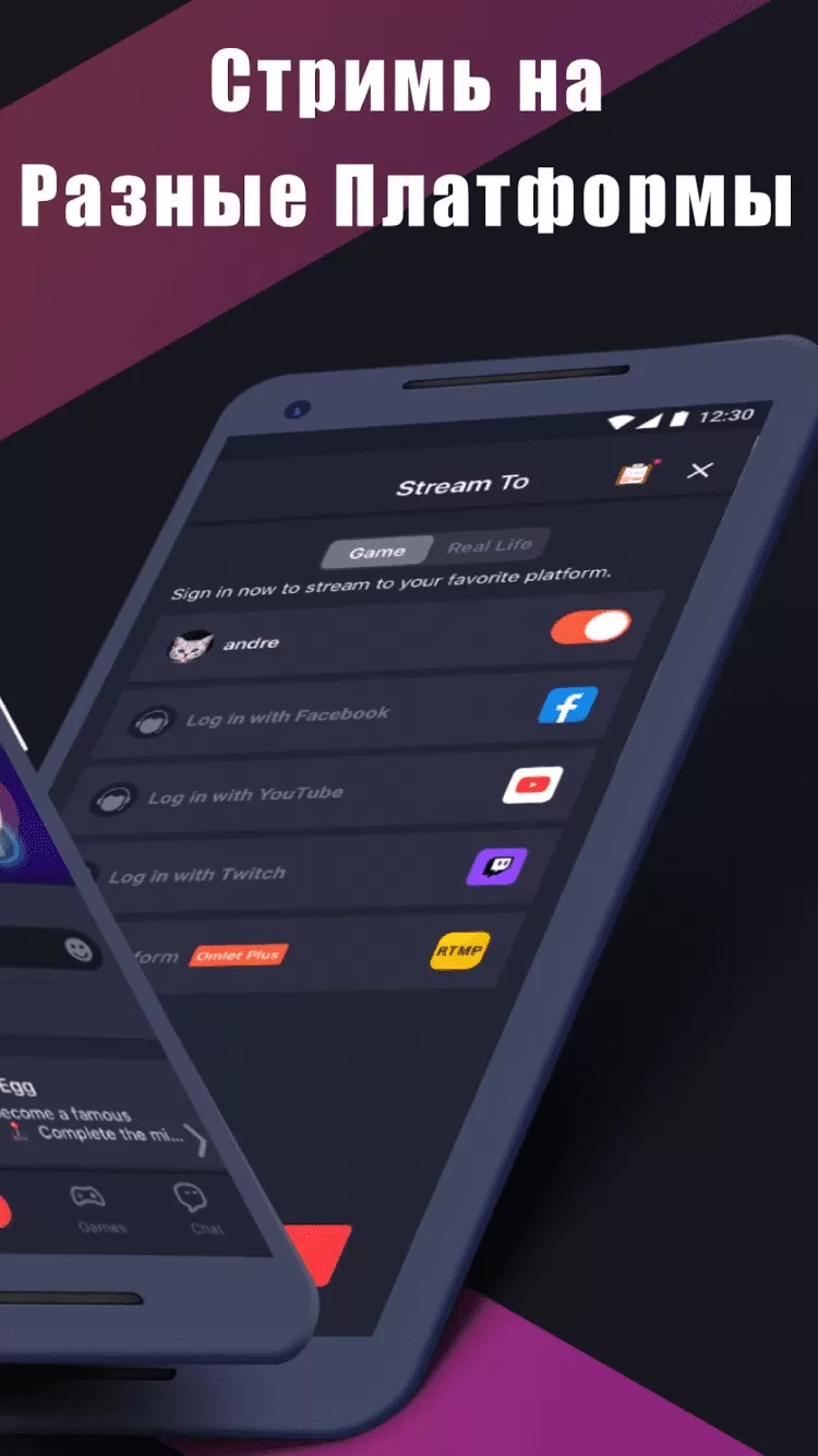 - Стримы на разные платформы (Omlet, Twitch, YouTube и Facebook);