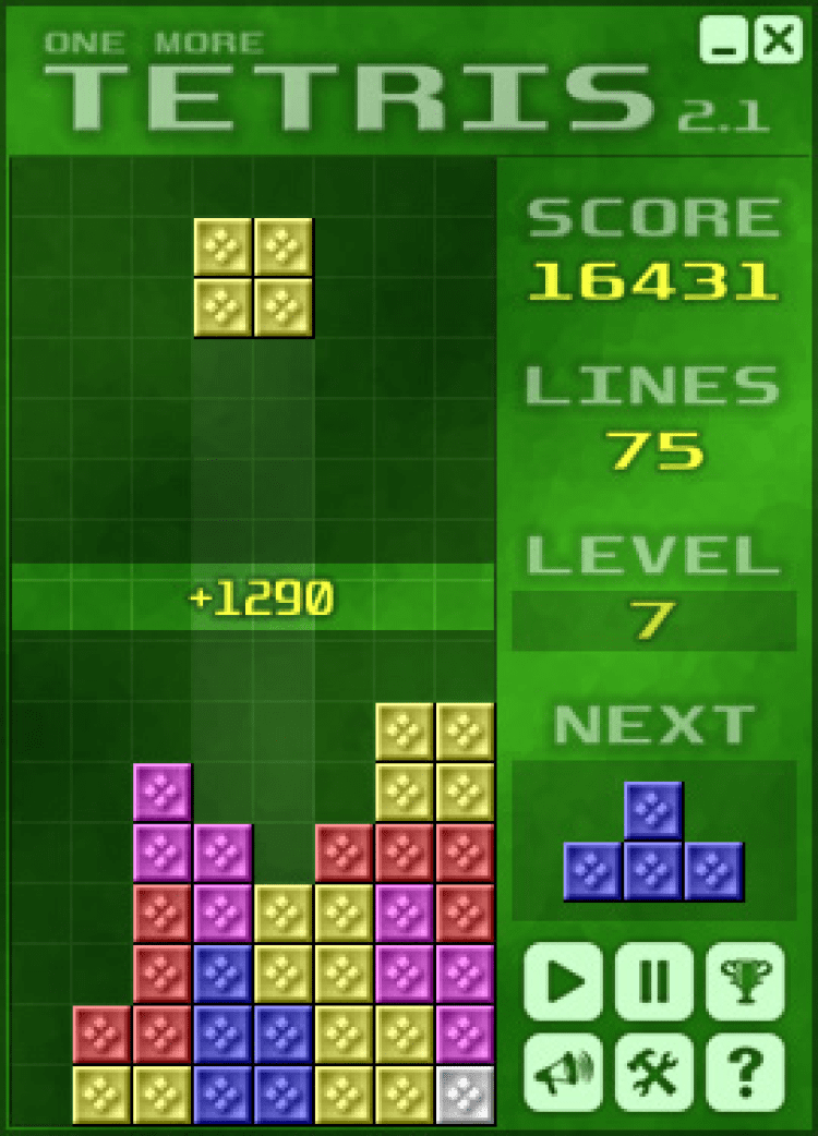 ONE MORE TETRIS — в этой игре вам предстоит выполнить миссию, терпеливо и внимательно пройдя все уровни и набрав максимальное количество очков.