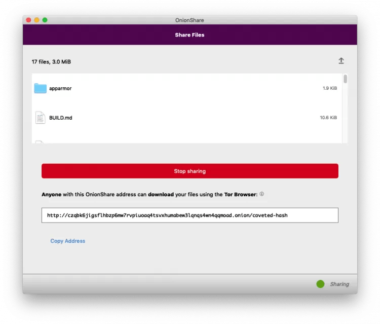 файлами через интернет. Использует анонимную сеть Tor для передачи
