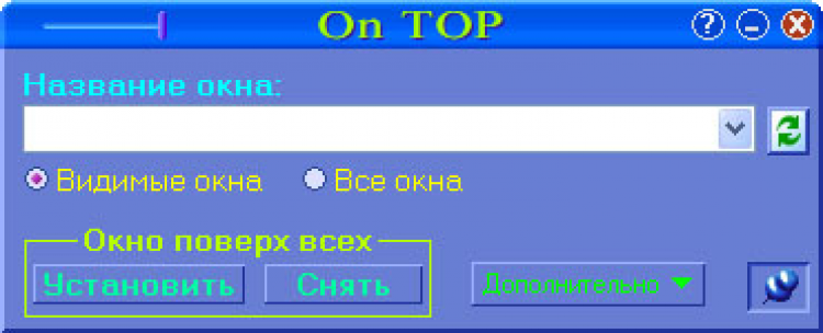 onTOP - это полезная программа. Часто необходимо разместить какое-либо окно поверх других, однако не у всех программ предусмотрена такая опция. В этом случае поможет OnTOP. Утилита также позволяет принудительно изменить размер и местоположение окна, а под Windows 2000 и XP можно управлять и прозрачностью окон. Интерфейс простой и понятный любому.