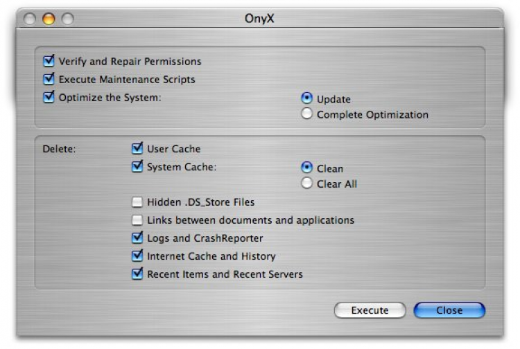 OnyX Незаменимая утилита для комполексного обслуживания вашей системы. Она проверит S.M.A.R.T. статус вашего жесткого диска и целостность раздела и поможет провести глубокую чистку от ненужных файлов. Воспользовавшись OnyX вы заметите насколько быстрее и плавнее стал работать ваш компьютер.
