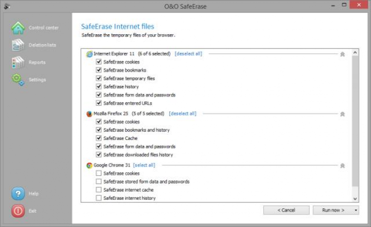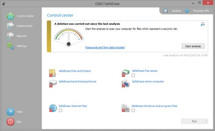 С помощью O&O SafeErase вы сможете удалить любые файлы, включая системные, так, что их уже будет невозможно восстановить. Программа может стирать целые диски и разделы, отдельные файлы и папки, файлы веб-браузеров (cookies, кэш, историю и т.д.). Она также может просканировать компьютер, найти файлы, удаленные обычным способом и полностью стереть их.