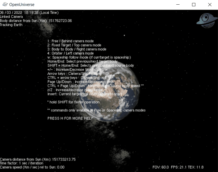 Open Univers - это 3D солнечная система, возможность путешествия по планетам солнечной систеиы и по их спутникам. Автоматический расчет расстояний. Возможность отслеживания реального положения планеты исходя из показания системных часов вашего компьютера.Демо режим путешествия (Star Ship) Много настроек: временной фактор, масштабы, положения камер и т.д.