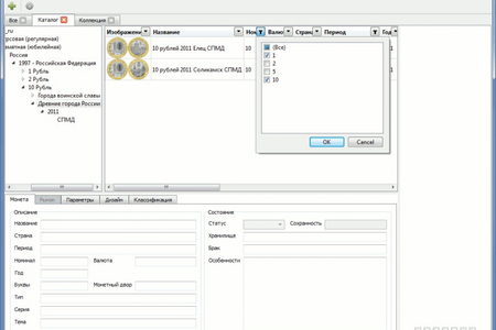 OpenNumismat Приложение, разработанное для любителей монет и нумизматов. Вы можете создавать и управлять своими электронными каталогами с подробным описанием и фотографиями монет.