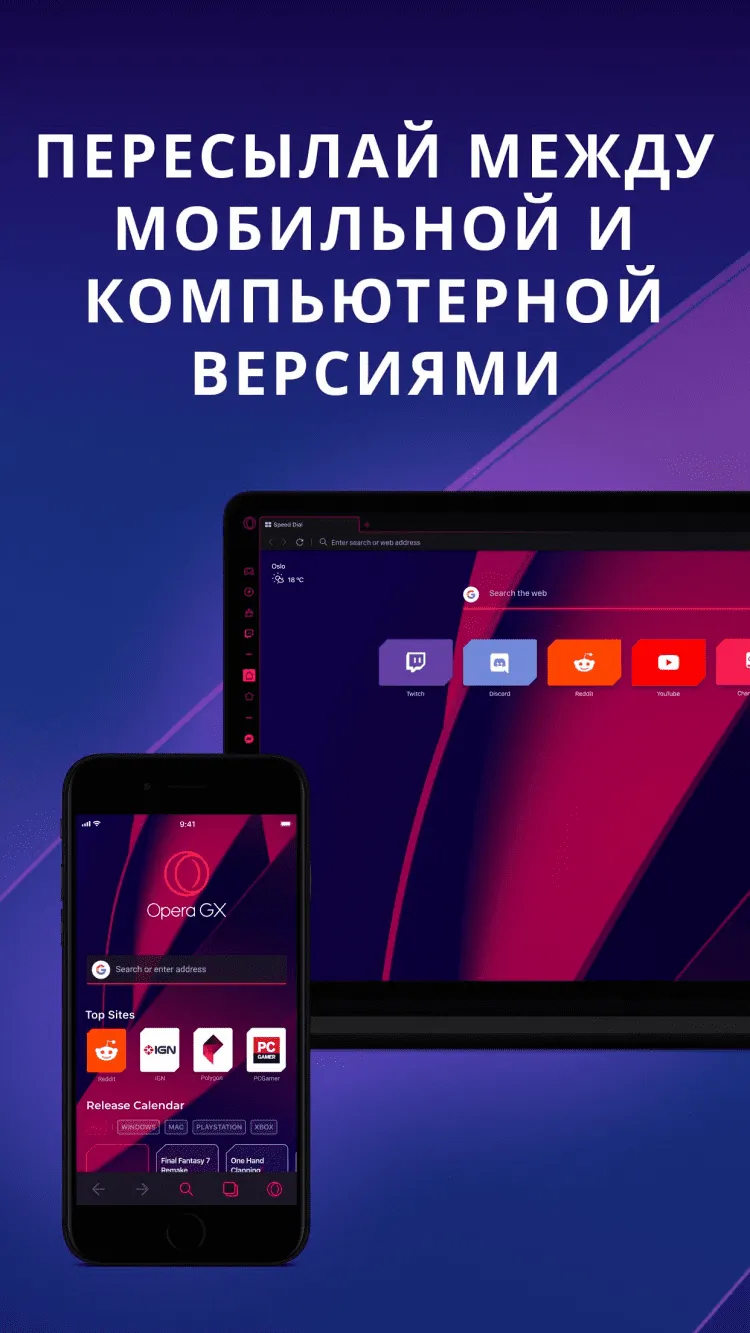 Opera GX — это быстрый и функциональный браузер, который наконец доступен на мобильных телефонах и планшетах под управлением Андроид. Программа предназначена специально для геймеров и обеспечивает не только комфортный интернет-серфинг, но и мгновенный доступ к полезной информации об играх, а также к популярным геймерским площадкам.