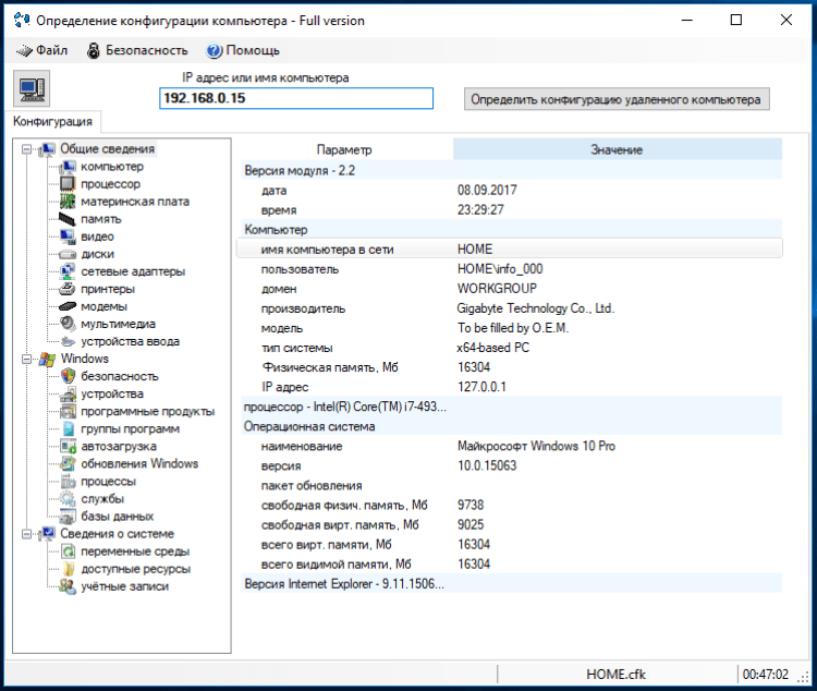 Определение конфигурации компьютера - это программа для удалённого определения конфигурации компьютера по его IP адресу или имени в сети (используется WMI).