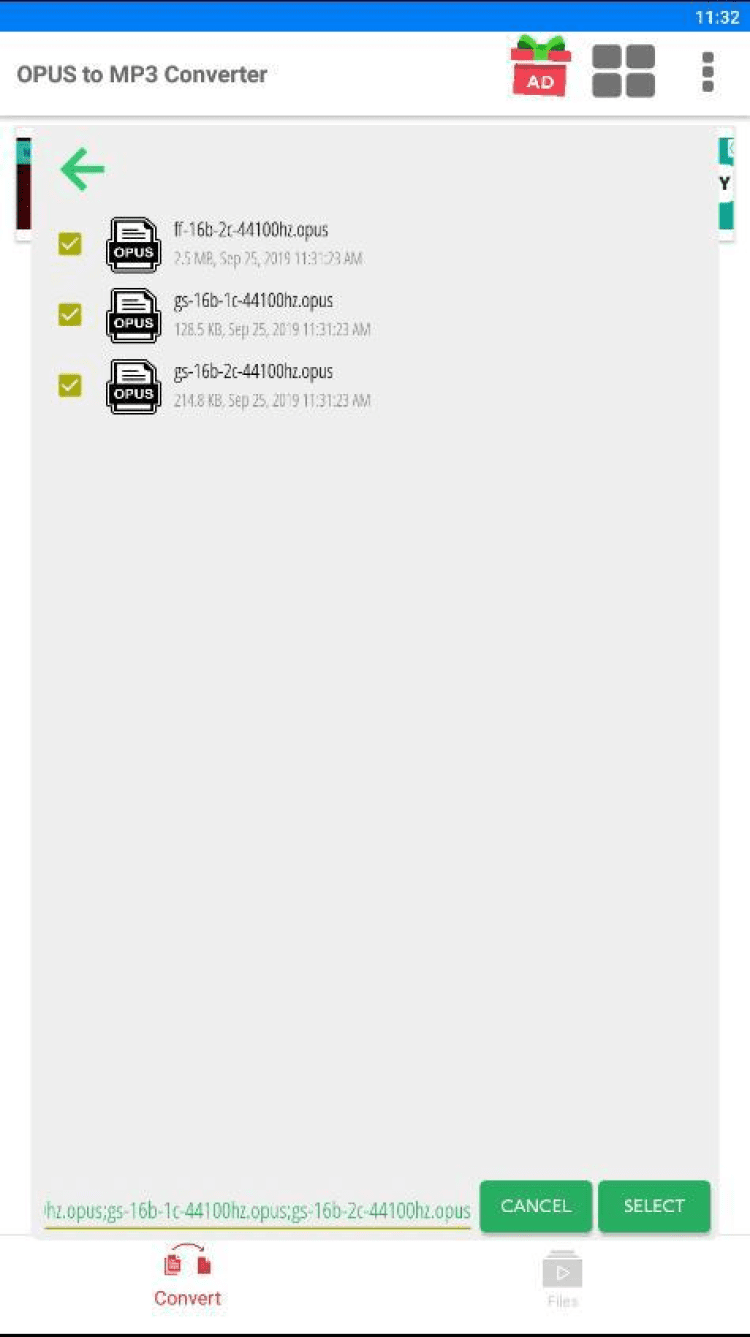 - Выберите один или несколько файлов в формате opus.