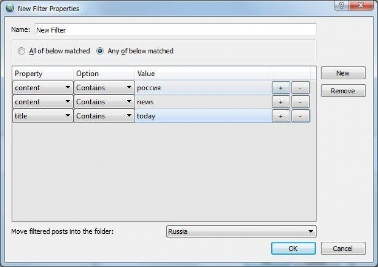 - группировка отфильтрованных записей в папку;