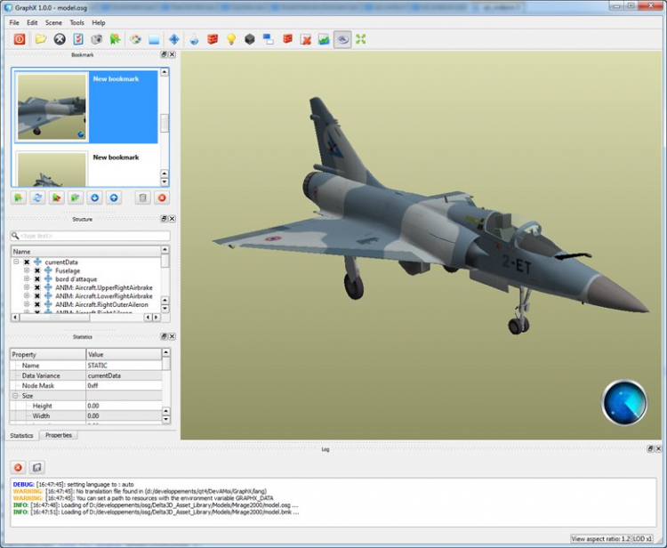 osGraphX - это программа для просмотра 3D-файлов, созданных в таких программах, как OpenFlight (.flt), 3D Studio (.3ds) или Collada (.dae). Она позволяет просматривать 3D-модели, делать их снимки в высоком разрешении, работать с внутренней структурой объектов. Кроме этого, в osGraphX можно включать/отключать источники освещения, текстуры и пр.